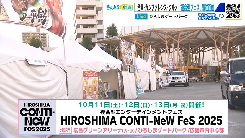 「HIROSHIMA CONTI-NeW FeS(広島コンティニューフェス)2025」は、広島市中区の広島グリーンアリーナ、ひろしまゲートパークをメイン会場に、明日11日(土)~13日(月・祝)3日間、開催されます。