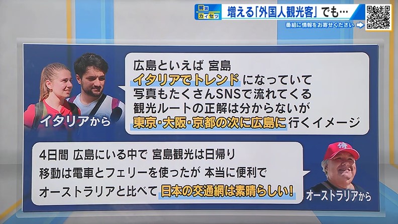 イタリアからの観光客は「イタリアでトレンドになっていて、写真もたくさんSNSで流れてくる。観光ルートの正解はわからないが、東京・大阪・京都の次に広島に行くイメージ」