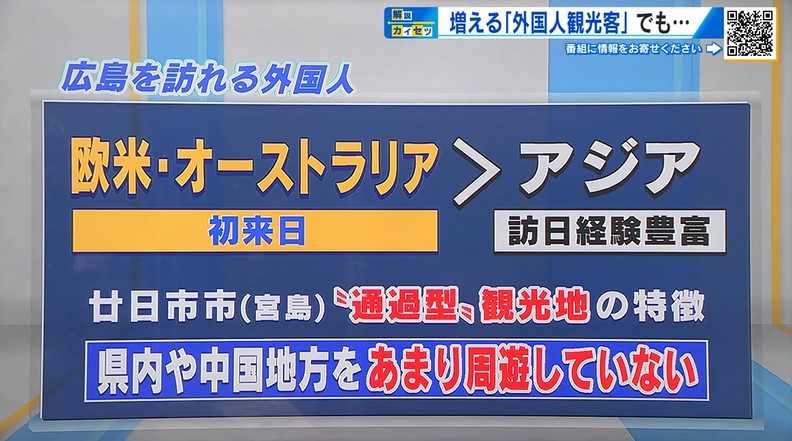 そして、宮島のある廿日市市では「通過型」の観光地である特徴があらわれ、県内や中国地方をあまり周遊していないことも明らかになりました。