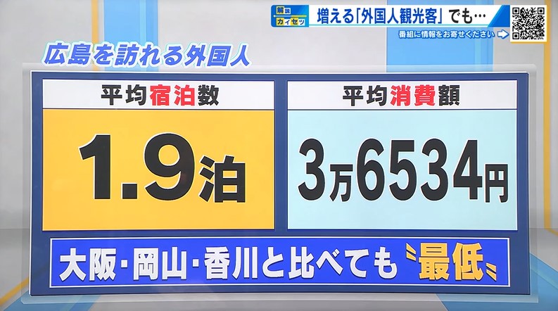 「衝撃的ですよね。手っ取り早いところだと、「広島に来てください」だけじゃなくて、「中国地方を回りましょう」という周遊型をパッケージ化するというのも大事だと思うが、私、海外に行って思うのが、海外では地域や島に入るだけで、入域料をがっちり数千円とられるところがある。結構そういうところが多い。広島は安く遊べてしまえるところが多いからこそ、広島だけの問題ではないが、インバウンドなど日本がもっと、観光の制度をテコ入れしてほしいと心から思う」