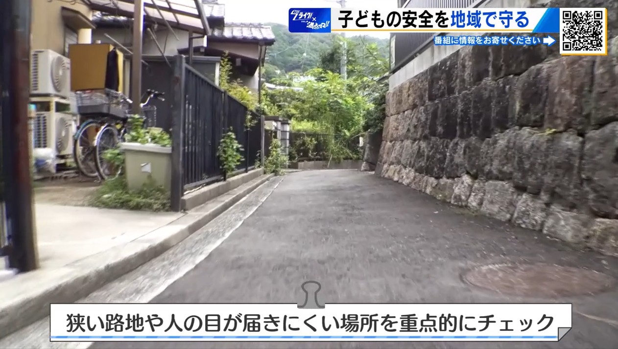 通学路では、防犯パトロールだけではなく飛び出しやすいところや、子どもならではの危険場所もチェックしていきます。