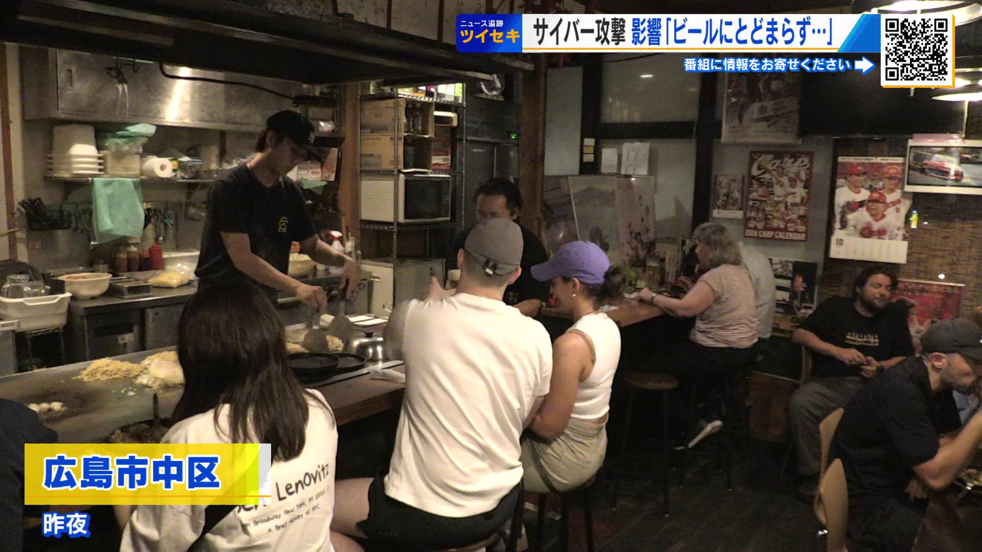 「全国的に影響が広がっているアサヒグループへのサイバー攻撃。こちらの広島市内のお好み焼き店もきょうも賑わいを見せているが、こちらにもその影響が出ているといいます」