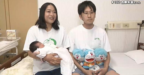 「長女の時と比べて4時間という、短い時間(の出産)ではあって。私たちはドラえもんが好きなので、夫が選曲してくれたドラえもんのBGMをかけながらリラックスした気持ちで臨むことができました」