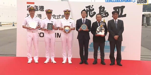 16日は初入港を記念した式典も行われ、関係者に記念品が贈呈されました。
