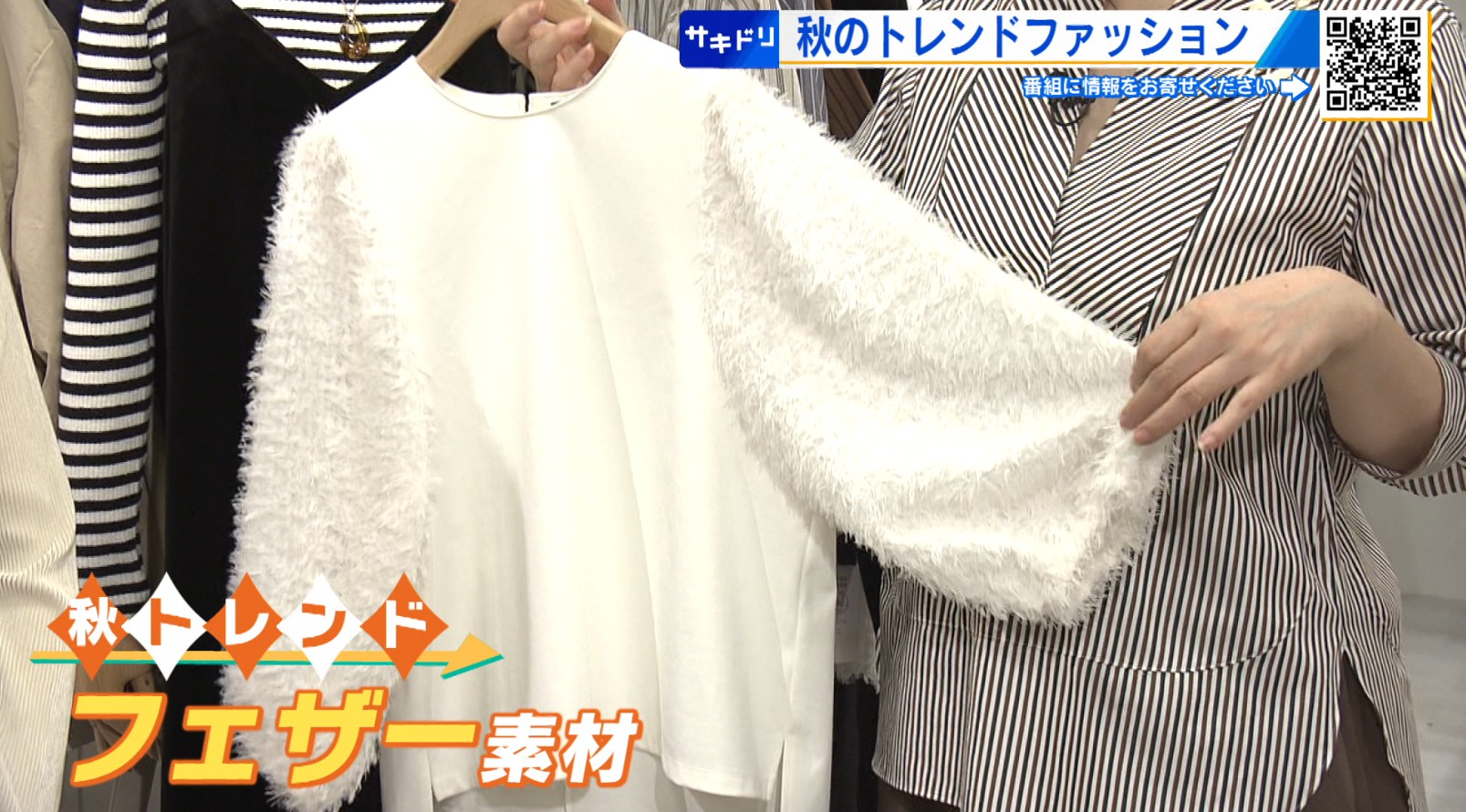 「秋ならではのフェザーです。フリンジとはまた違って、羽根のような感じ」