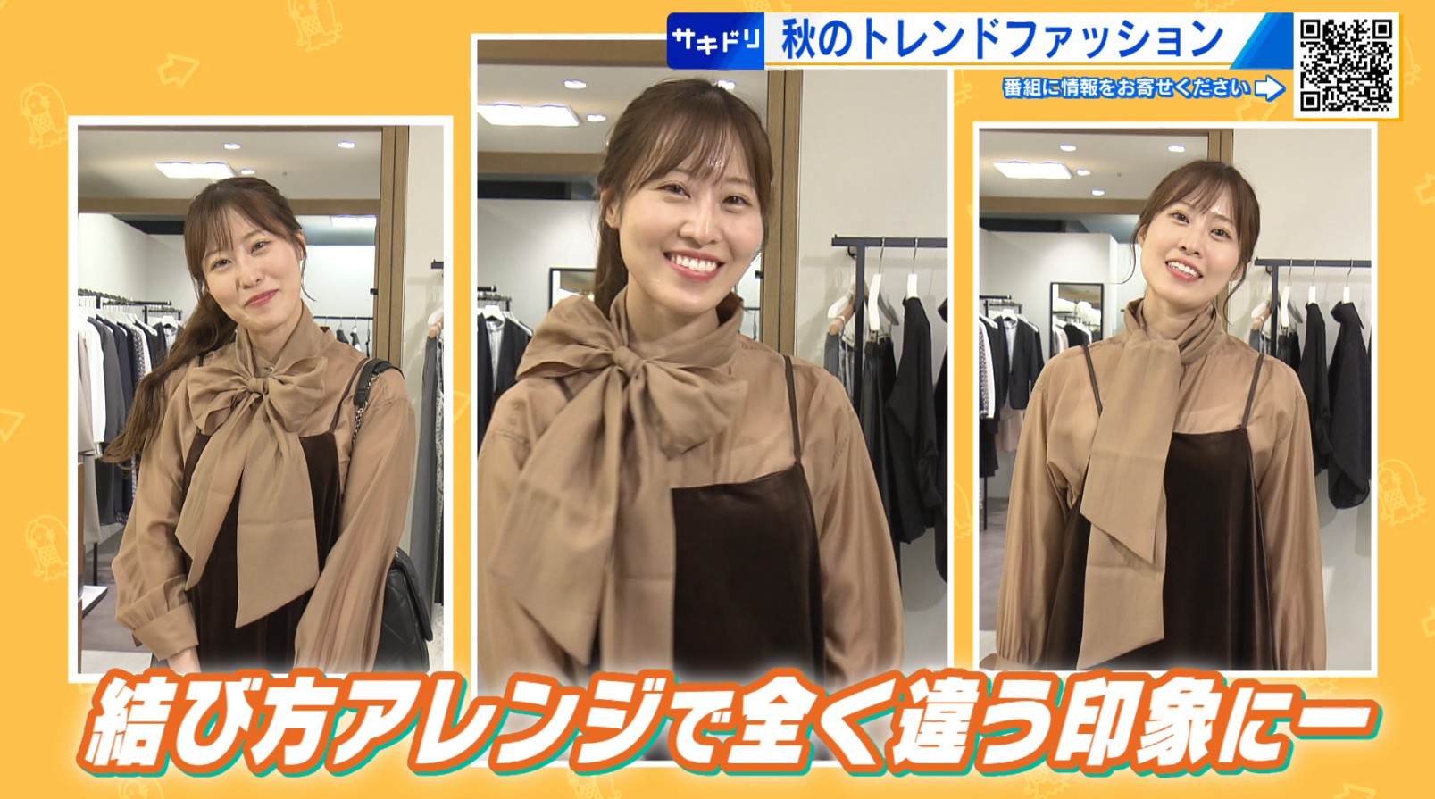 「リボンが全面に来ると、大人女子の方は気おくれする感じになるかもしれないんですけど、結び方でグッと大人っぽくもなるので。真ん中にリボンがあるのと、少しリボンが横にいくのと、タイのようにすることで全然印象が変わります。色んな着こなしが楽しめると思います」