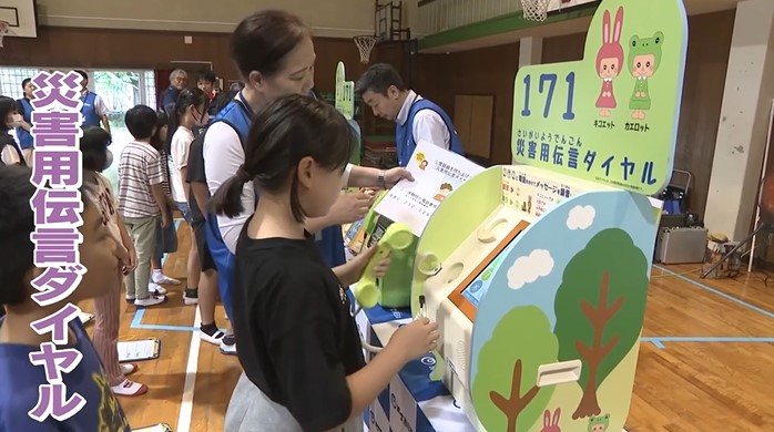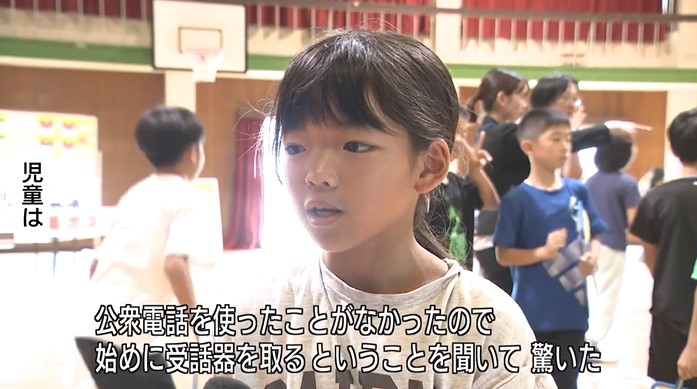 通信手段として欠かせない電話に関するコーナーでは地震や台風など災害への備えとして児童たちが、停電しても使える「公衆電話」や、安否確認のための「災害用伝言ダイヤル」を体験しました。