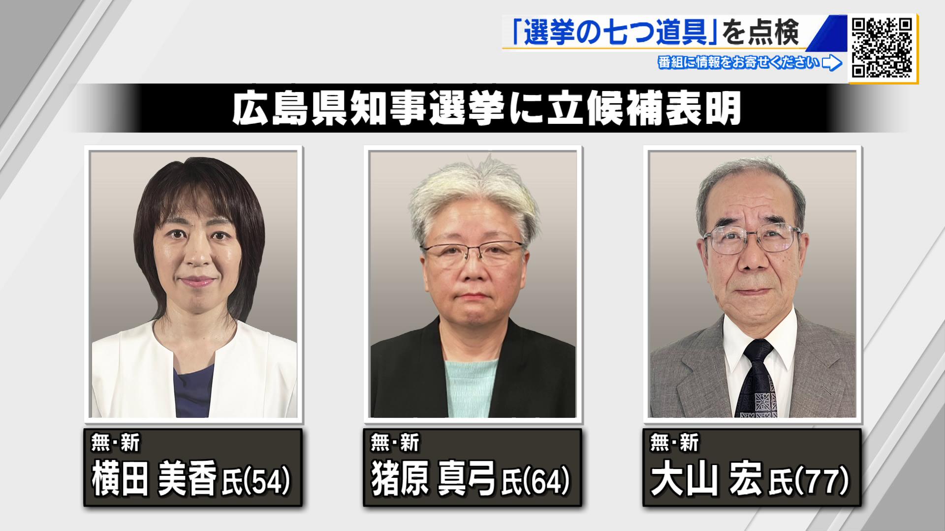 知事選をめぐってはこれまでに、いずれも無所属・新人で元副知事の横田美香氏、共産党の県東部地区常任委員・猪原真弓氏、サイエンス作家の大山宏氏の3人が立候補を表明しています。