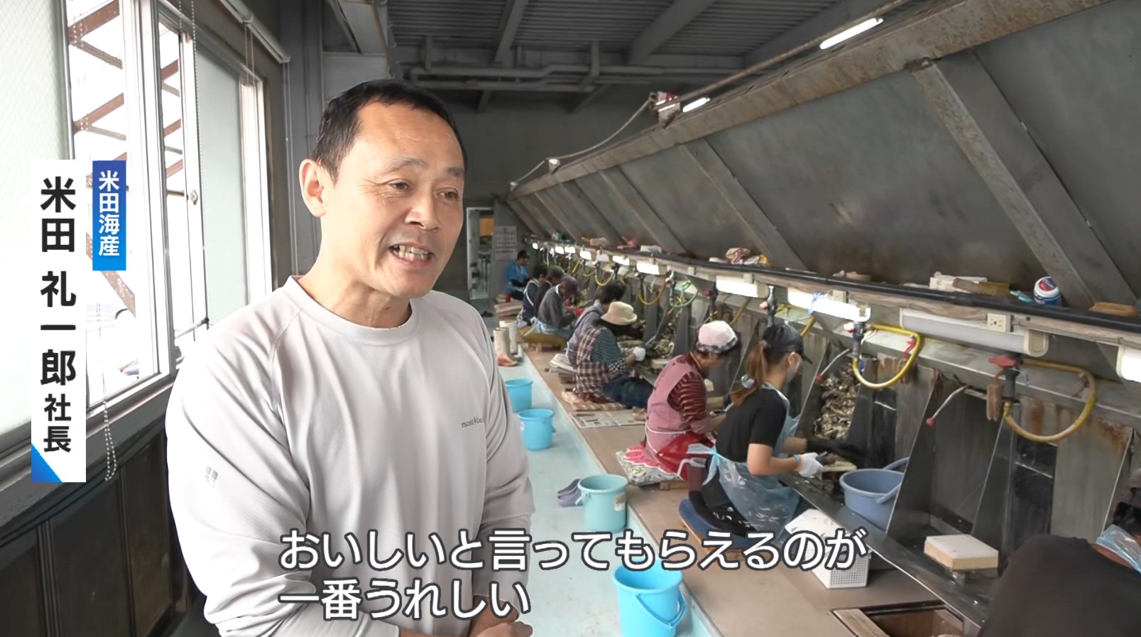 広島市の米田海産のカキ打ち場は早速、活気に満ちていました。