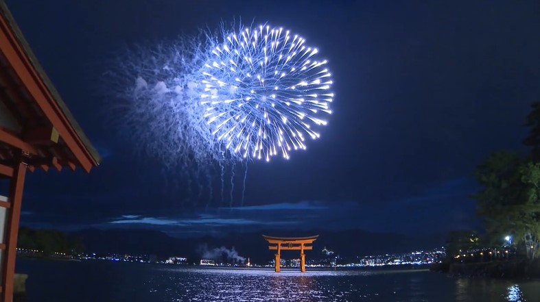 世界遺産の島、宮島の名物だった水中花火大会が18日、装いを新たに開催されました。広島にルーツがある人気者がアンバサダーを務めました。