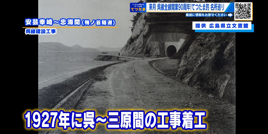 それからおよそ20年…時代は昭和に入った1927年に三原、呉の両側で工事に着工。少しずつ延伸しながら1935年11月に呉線は全通しました。