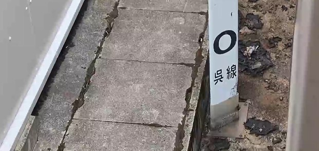 どのあたりですか?この辺り、どうです?あ、ありました。ちょっと角度が厳しいかな。どうかな?はい、0というね、数字とともに下に呉線と書いた標がありますけど。