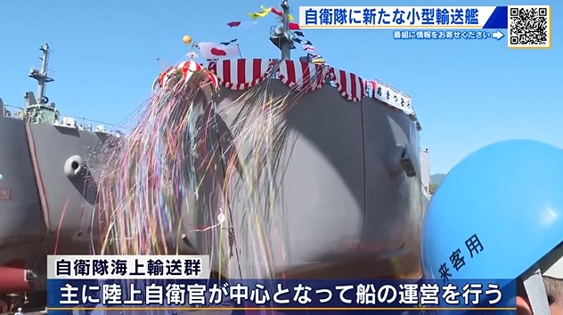 今年3月に発足した『自衛隊海上輸送群』に新たに就役する小型輸送艦の命名式と進水式が行われました。