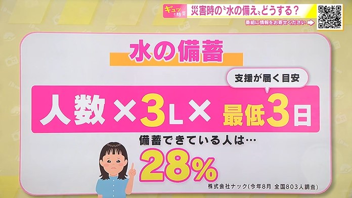 国は一人あたり1日3リットル支援が届くまでの最低3日間分の備蓄を推奨しています。