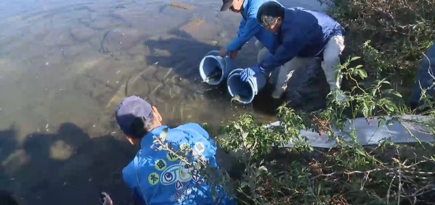 きょう24日、漁協では産卵を間近に控えた親のアユおよそ2000尾を放流しました。