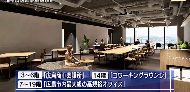 3階から6階には「広島商工会議所」が入り14階には多様な働き方を叶えるコワーキングラウンジも…。