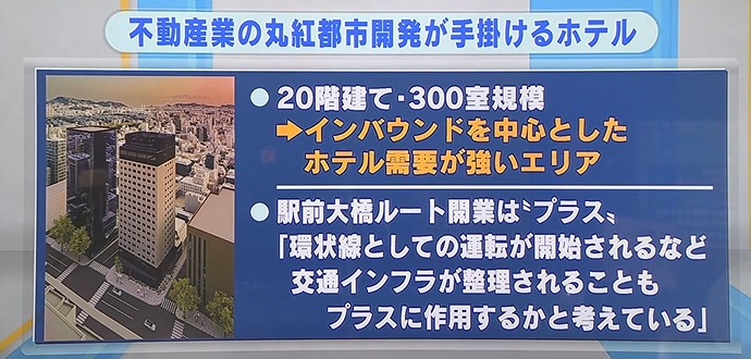 この理由について担当者は「インバウンドを中心としたホテル需要が強いエリアのため300室規模にて検討している」とコメントしています。