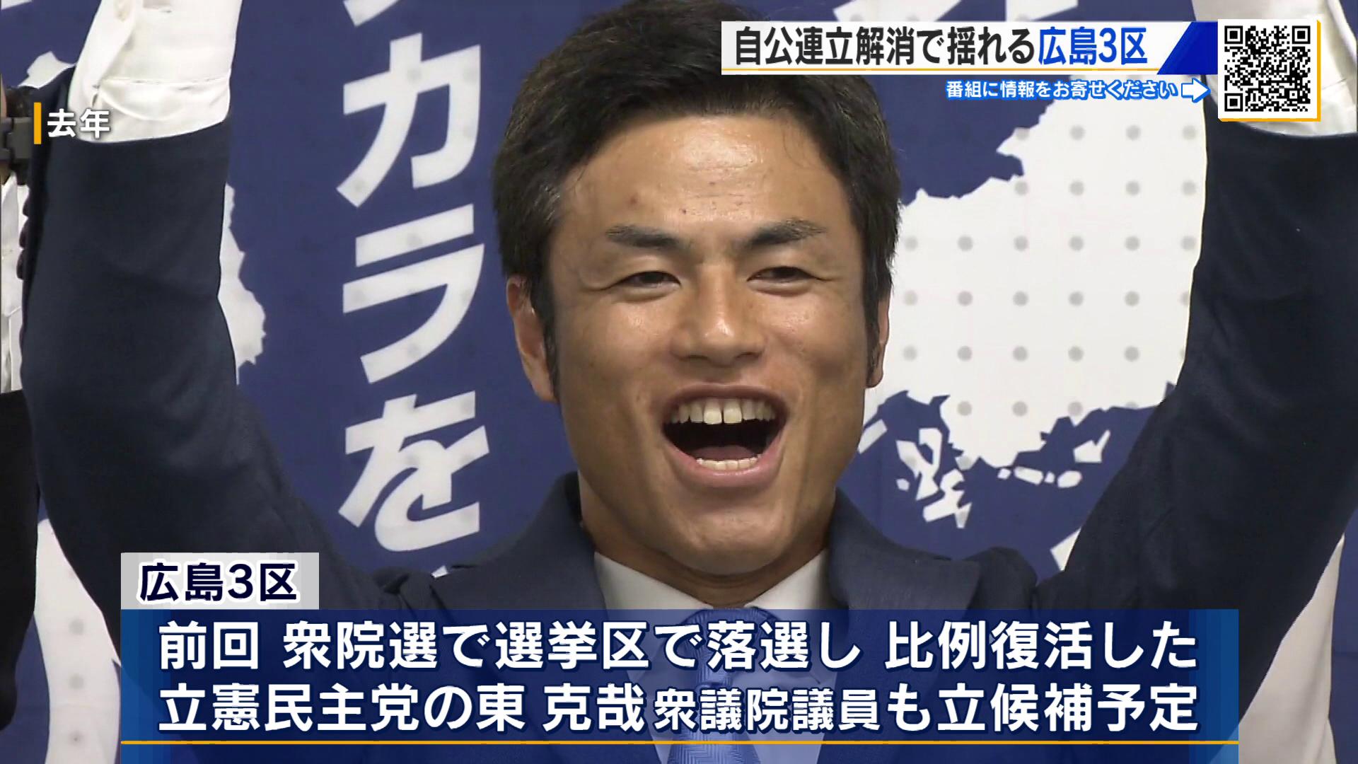 このほか、広島3区には前回、選挙区で落選し、比例で復活した立憲民主党の東克哉議員も立候補を予定しています。