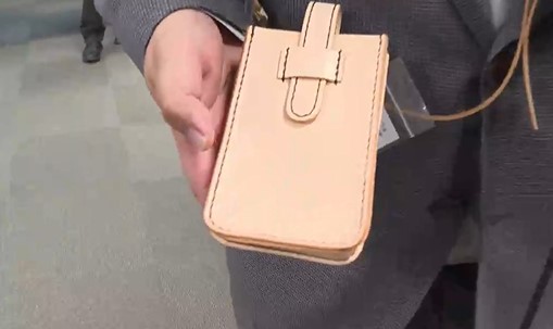 「広島刑務所でつくられたこちらスマホポーチなんですが、縫っている部分すべて手縫いだそうです。受刑者の高齢化でこういった細かい作業ができる受刑者が少なくなってきているそうです」
