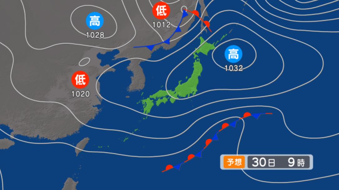 10/30(木)は高気圧の中心が日本の東まで進んでいきます。それでも引き続き、高気圧のエリアは広く、県内もその影響を受ける見込みです。