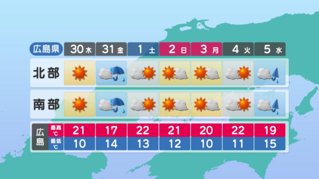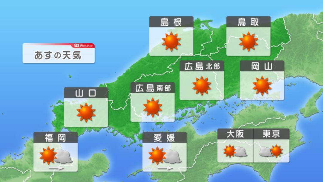 【広島の天気】10/30(木)も快晴&洗濯日和 朝は冬目前のような冷え込みに