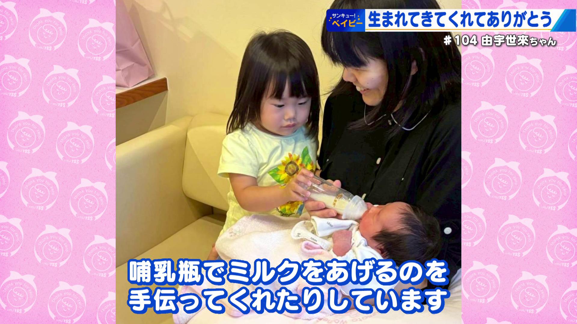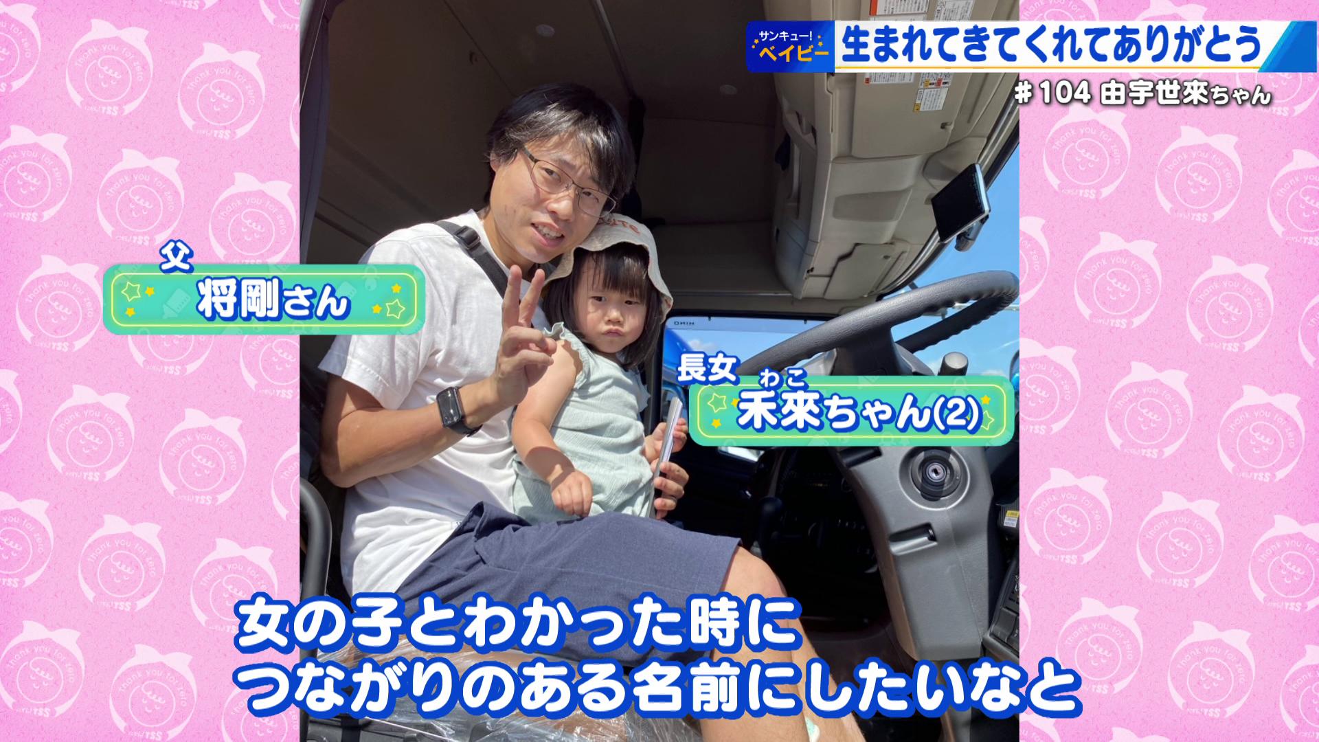 【母・文香さん】「由宇世來(ゆう せら)ちゃんです。長女が禾來(わこ)という名前で女の子とわかった時に繋がりのある名前にしたいなあっていうので、いろいろと考えている中で世來っていう響きが可愛いなあっていうところで。響きは夫が考えて、漢字は私がという風な感じで。夫婦2人で決めました」