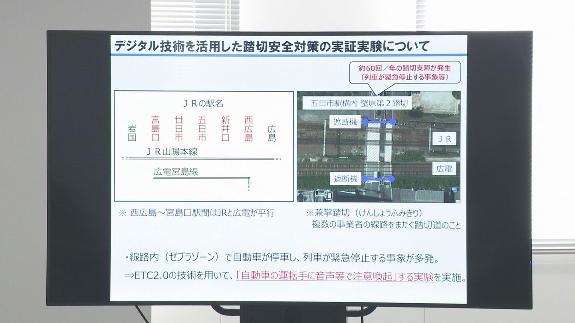 JR西日本は広島電鉄と並走する区間の踏切内で、車が停まる問題の解消を目指すため、デジタル技術を活用した全国初の実証実験を、今年12月から始めると発表しました。