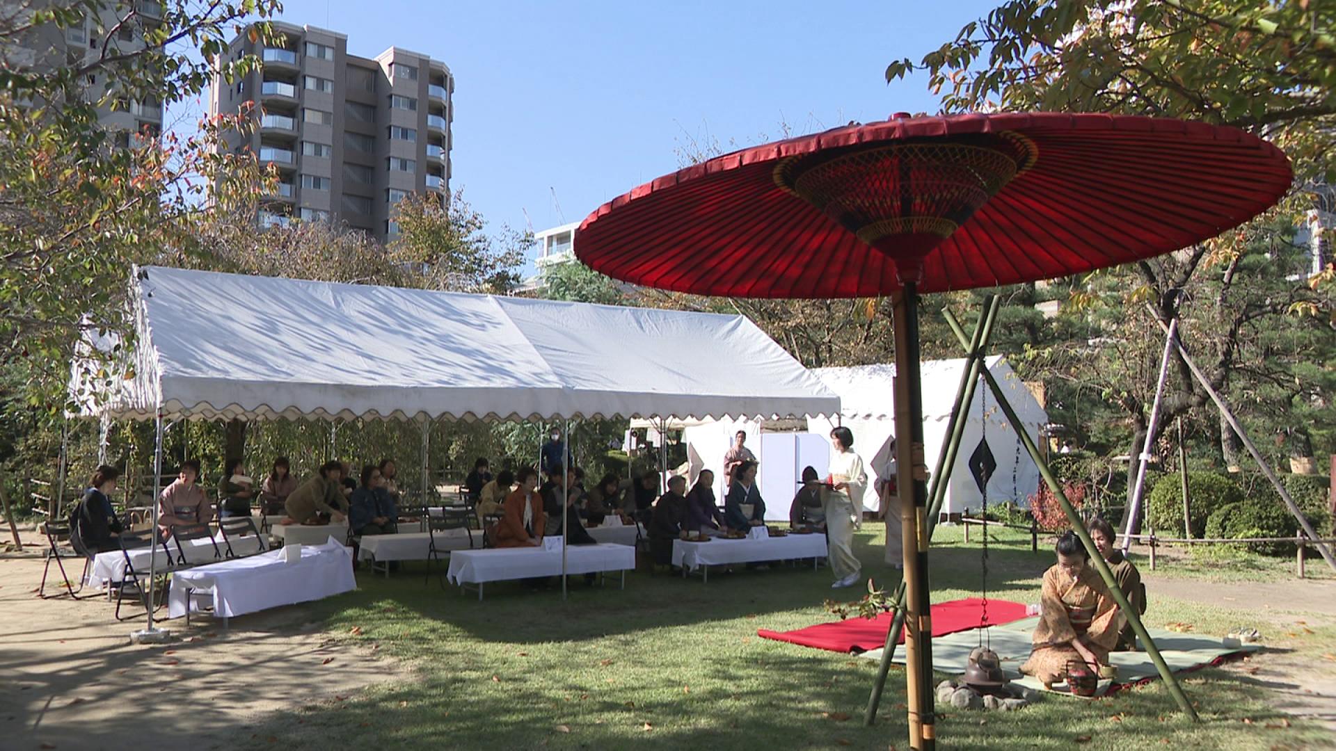 広島市中区の縮景園では、秋に見ごろの菊を楽しむ「菊見茶会」が開かれ、訪れた人は秋の風情を堪能していました。