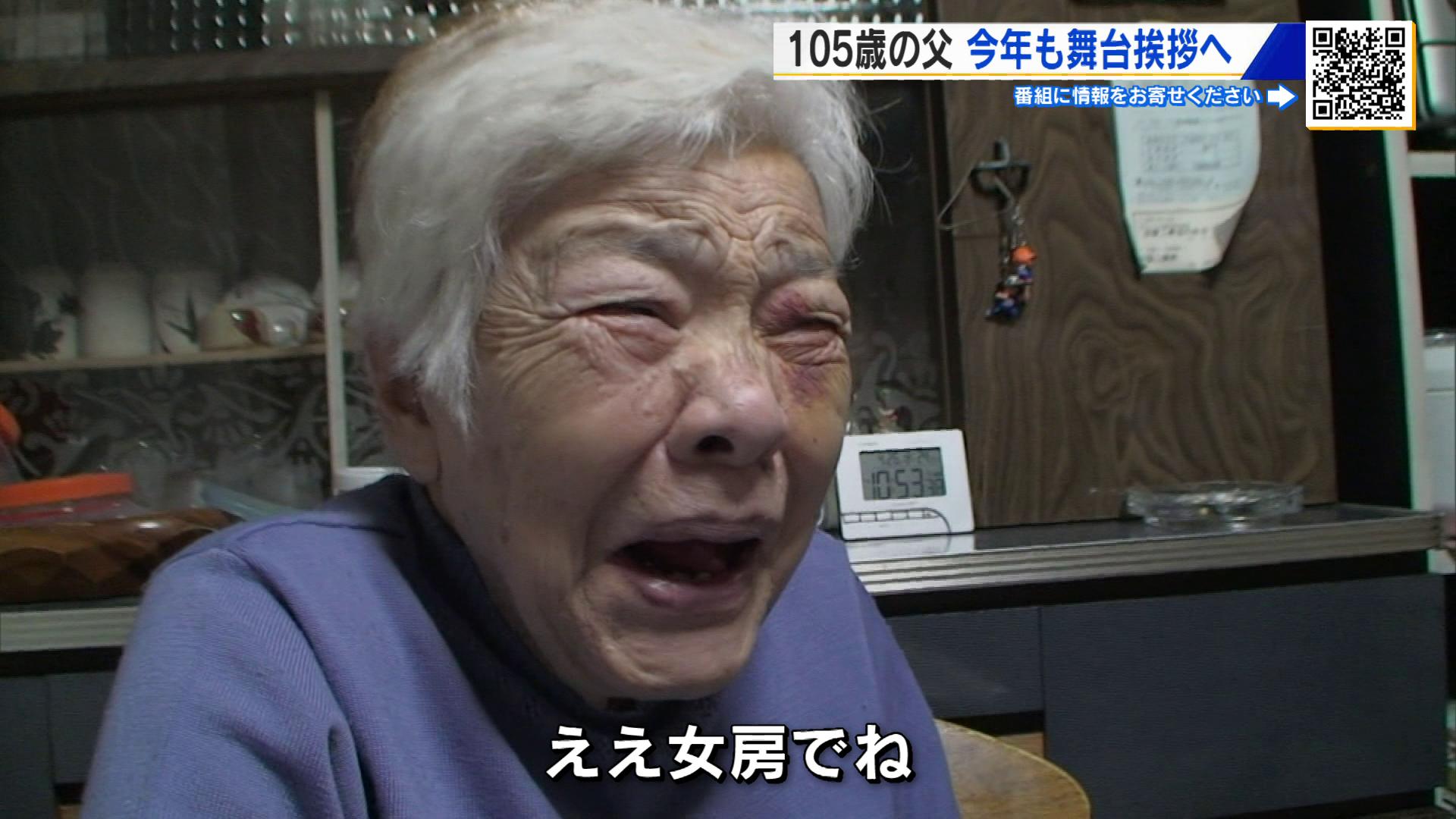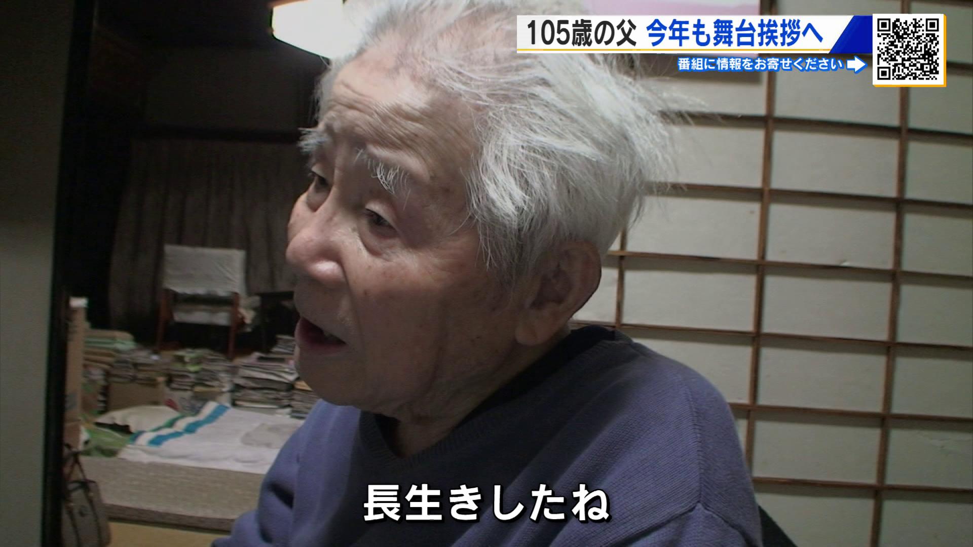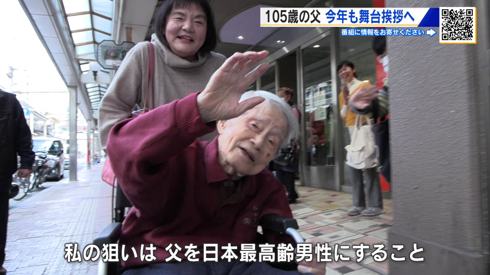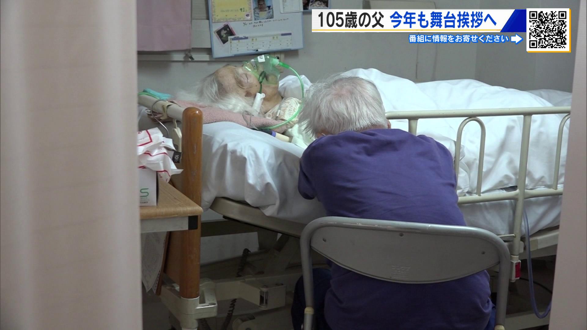 104歳までは自分の言葉でしゃべれていたけどもうしゃべれない。もう最後だと思う。私の狙いは父を日本最高齢男性にすること。あと5年か6年がんばります。ばいばいありがとう。