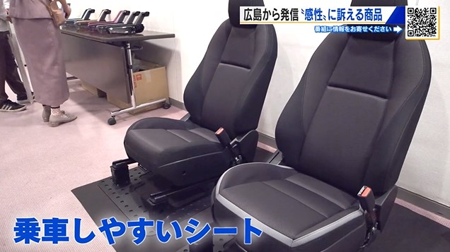 展示会場では、シートの境界線をわかりやすくすることで無意識に乗りやすいと感じられる座席や、模様や加工を変えることで木の味わいや心地よさを感じることができるフローリングなど県内8企業の取り組みが紹介されました。