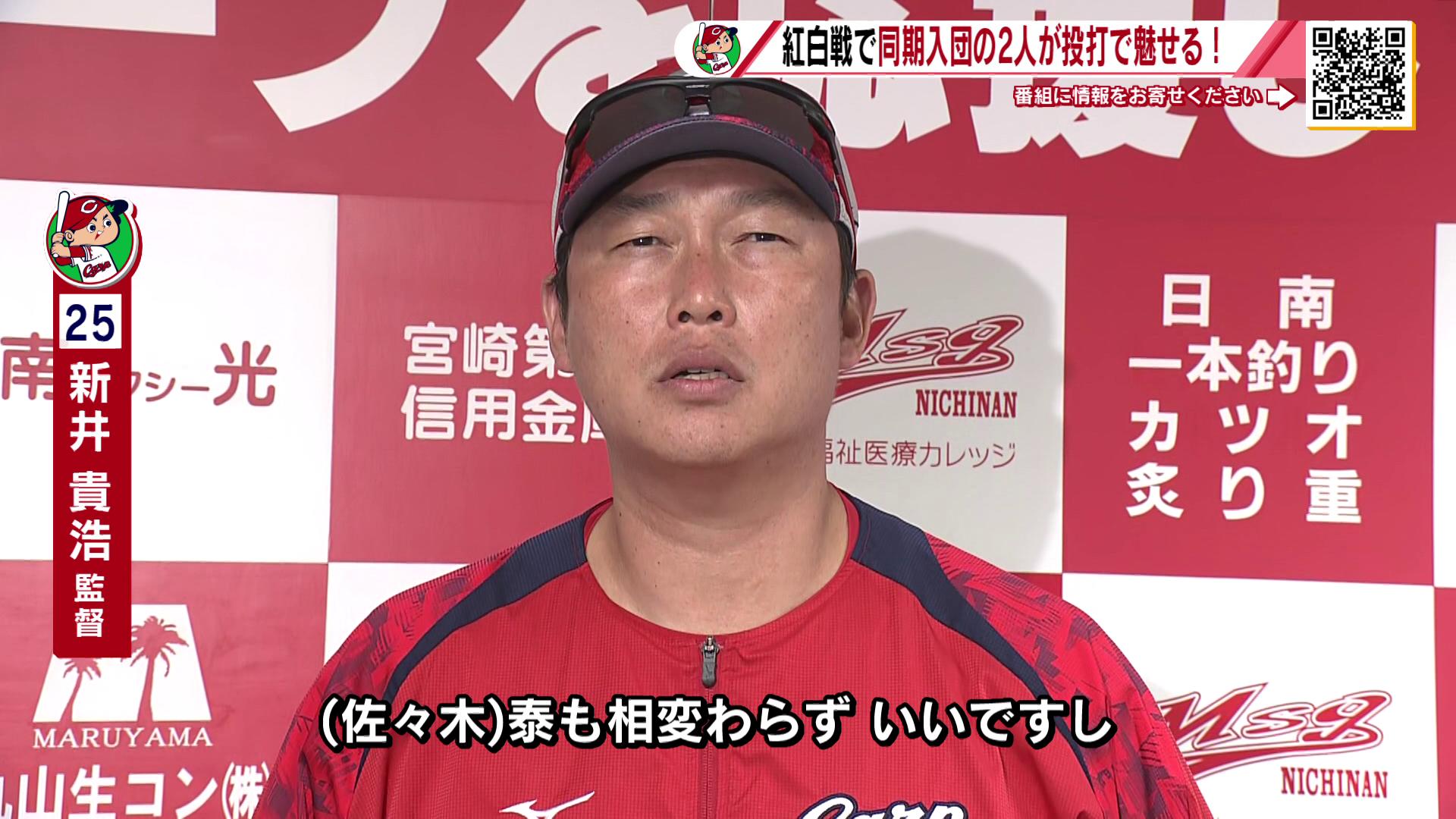 「(佐々木)泰も相変わらずいいですし、しっかりとスイングできている打者が多いと思います。きょう投げた岡本と辻は、ちょっと(レベルが)違うなと思いました。技術的な練習もそうですけど、しっかり体も追い込めていると思います」