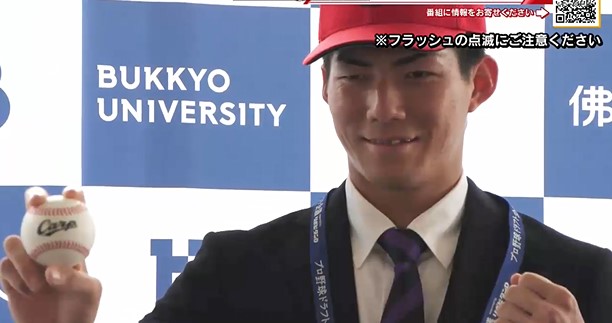 そして、5日午前、京都府の佛教大学で行われたドラフト5位・赤木晴哉投手への指名挨拶。