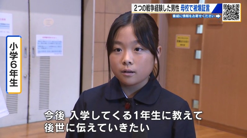 1945年8月6日、爆心地からわずか460メートルの小学校で原爆にあった被爆者が、きょう母校で被爆体験を児童たちに語りました。