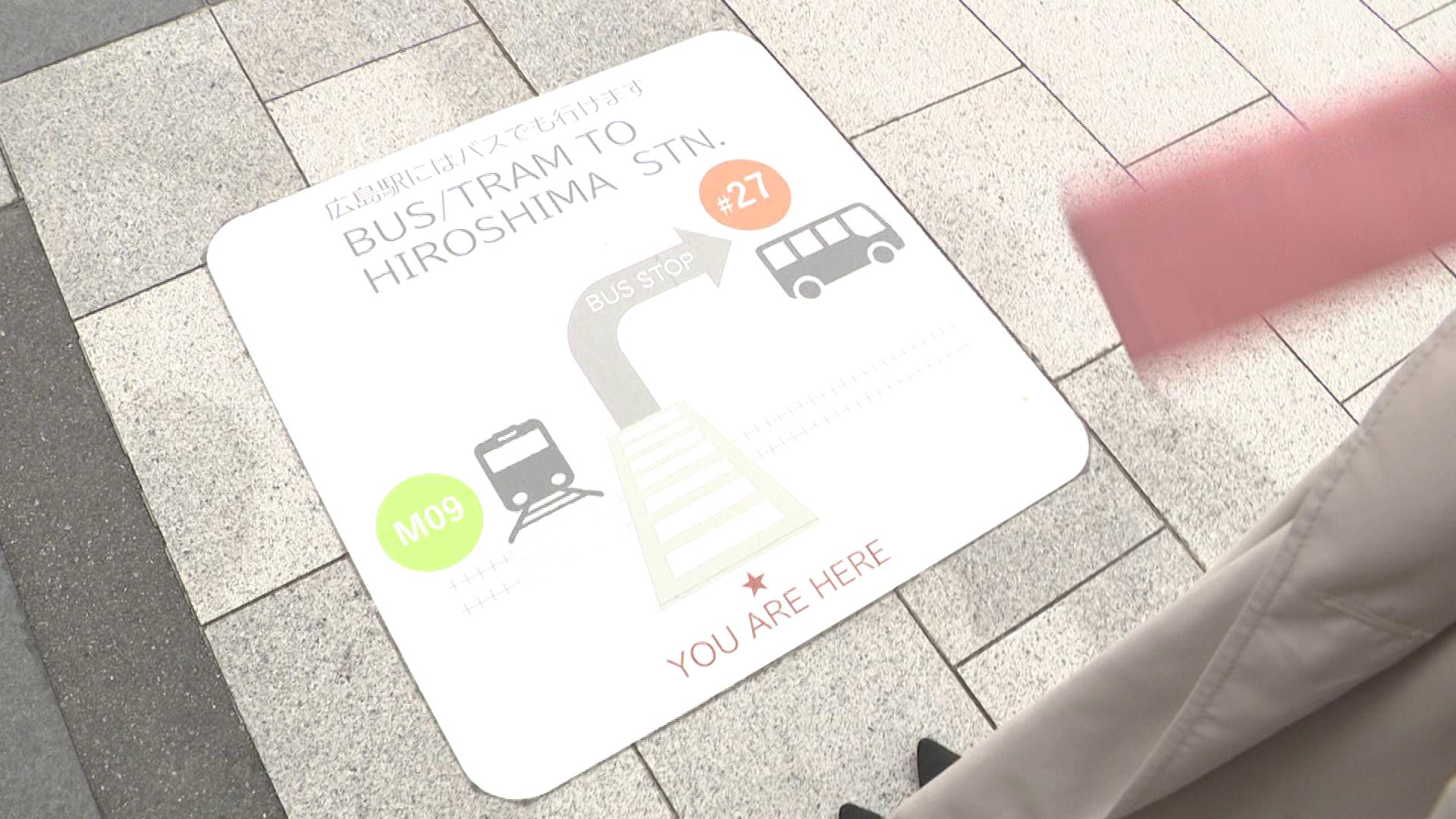 「多くの観光客の方が訪れる原爆ドーム前ですが、横断歩道を渡るとあまり見慣れないマークが設置されています。広島駅にはバスでも行けます。たしかにあそこにもピクトグラムのマークがありますね」