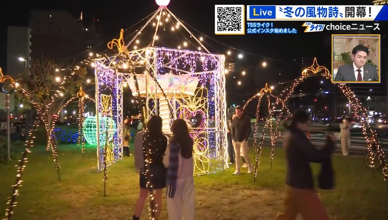 きょうから冬の風物詩であるライトアップが始まったということで中継です。