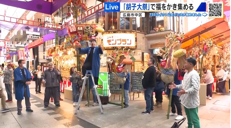 【中継】商売繁盛を願う「胡子大祭」賑わう 福をかき集める「こまざらえ」 豆から特特大まで9種類 広島