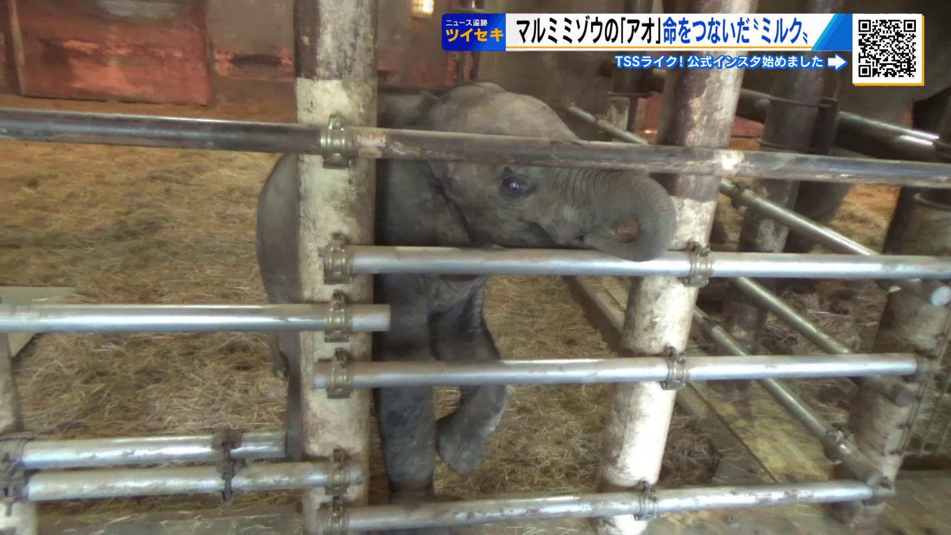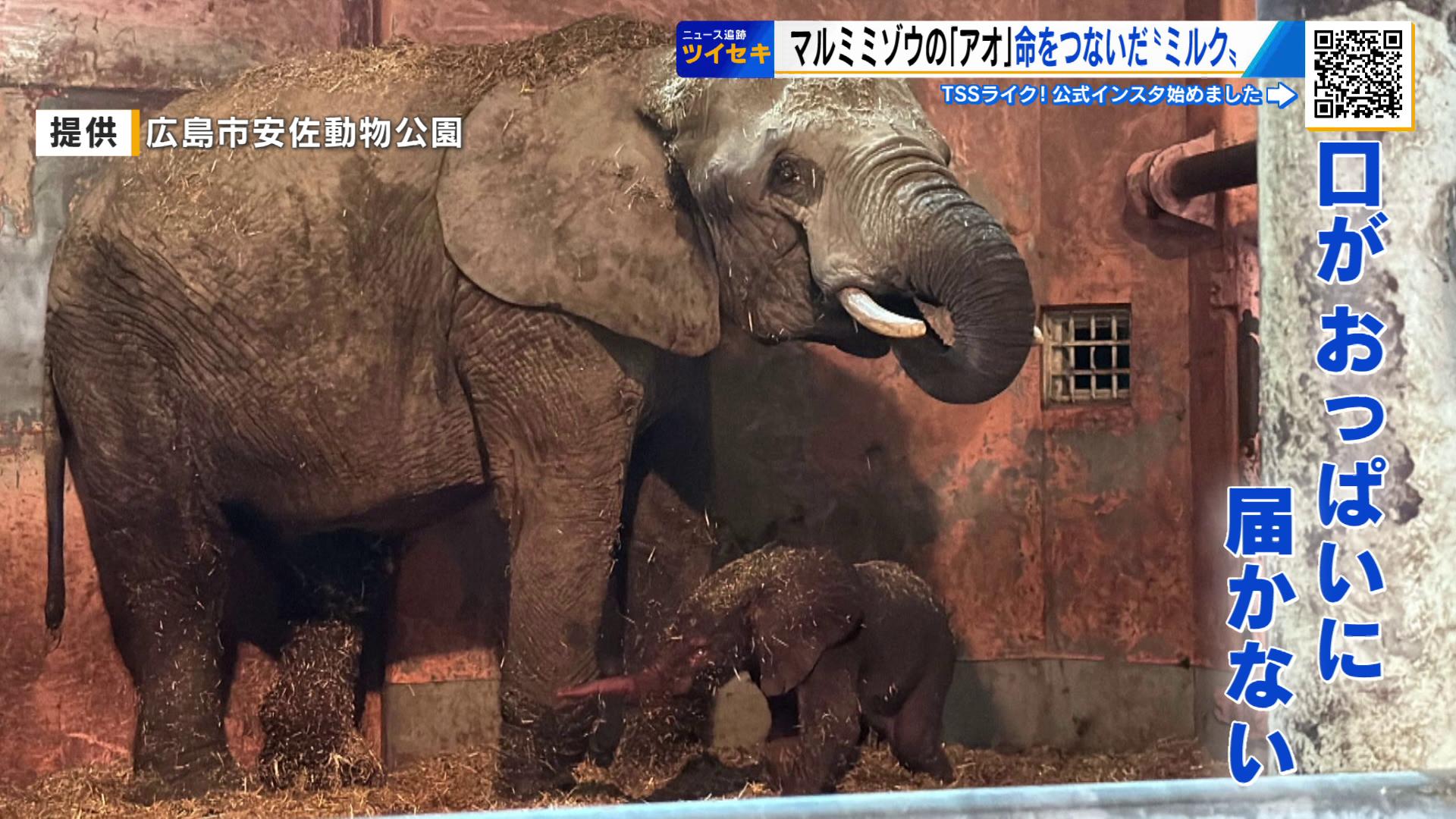 番組が継続取材している「マルミミゾウ」の「アオ」。その命をつないだ象のためのミルクを開発し提供したメーカーの担当者が初めて安佐動物公園を訪れました。