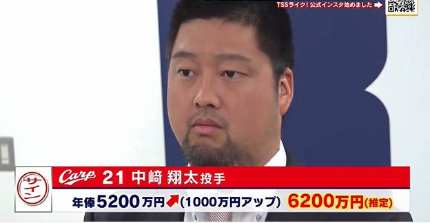 1000万円アップの推定年俸6200万円で契約を更改しています。