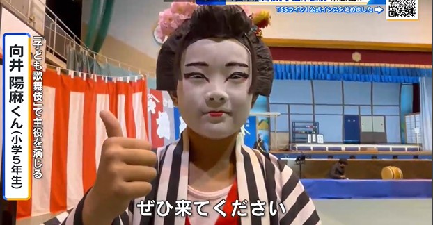 【子ども歌舞伎で主役を演じる向井陽麻くん(小学5年)】