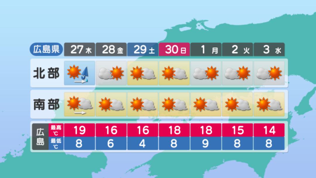 【広島の天気】天気下り坂・強まる風・黄砂…27日(木)は様々なポイントに注意
