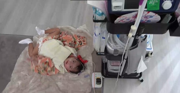 梨瑚ちゃんはチューブを通して鼻から胃にミルクを送り、栄養をとっています。