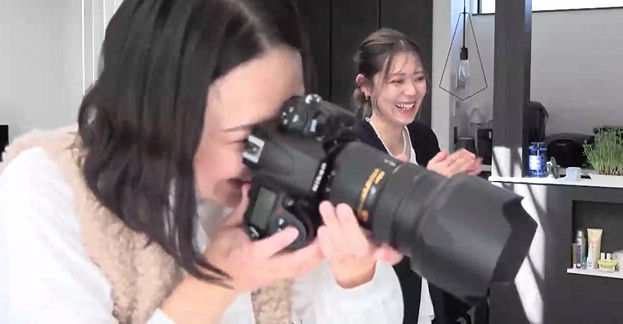 自宅に出向いて七五三の撮影を行うカメラマンの榎 春菜さん。