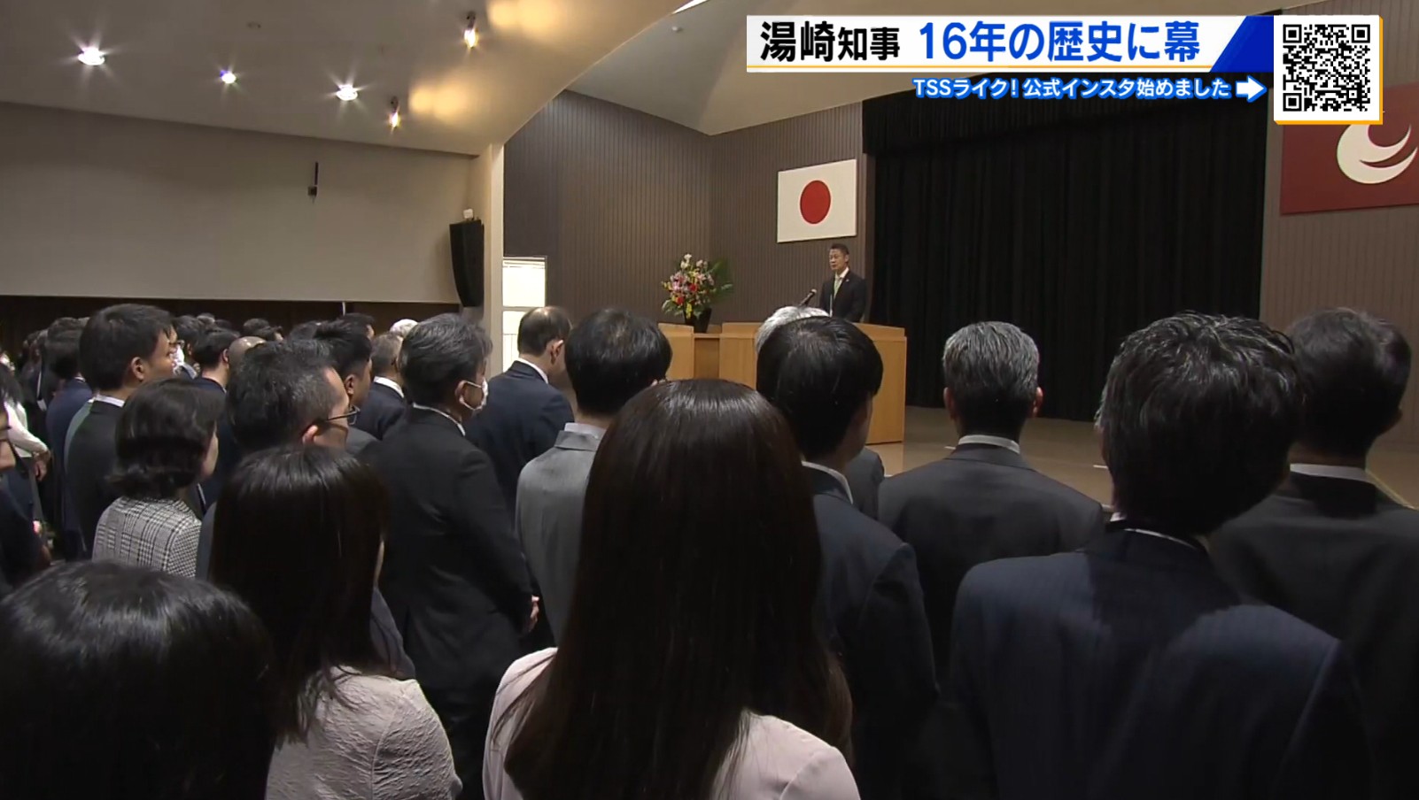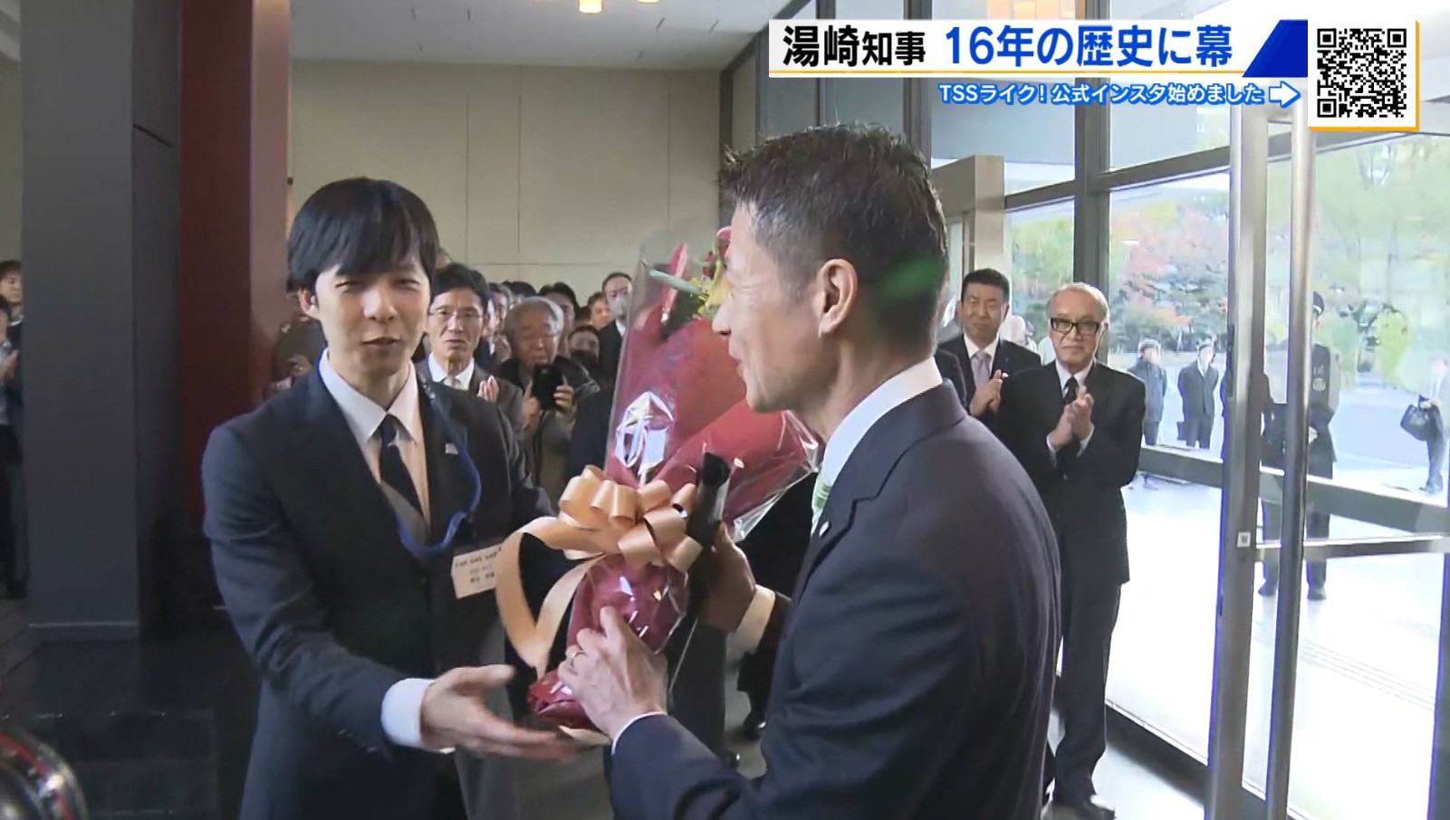 最後はおよそ600人の県庁職員らに見送られ、笑顔で16年間務めた県庁を後にしました。