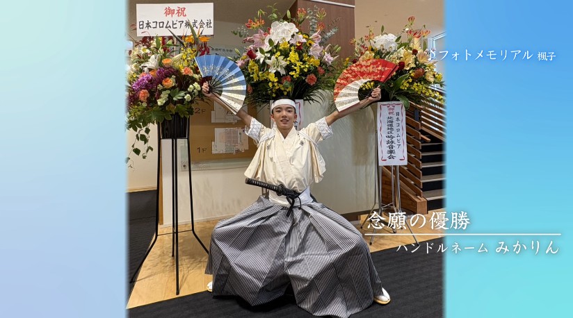 剣舞で全国大会のために北海道まで行き、なんと少年の部で優勝したそうです。やりきった表情ですね。かっこいいですね。