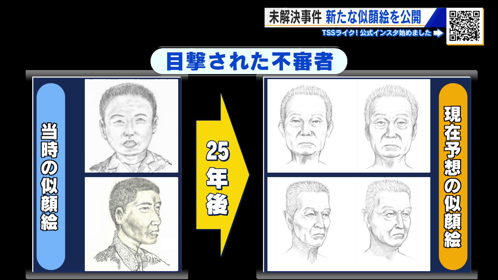 発生から25年となる未解決事件で当時、目撃された不審な2人の男の似顔絵。