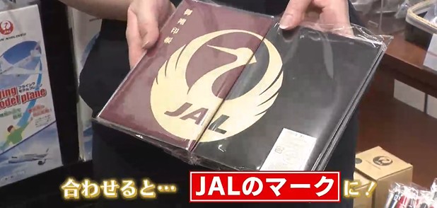 「はい、ファイルになっております。合わせるとJALのマークになります」