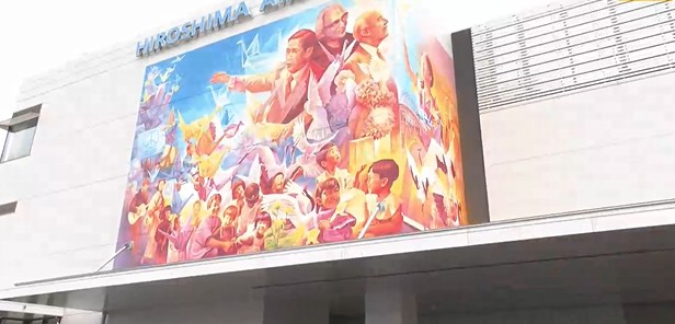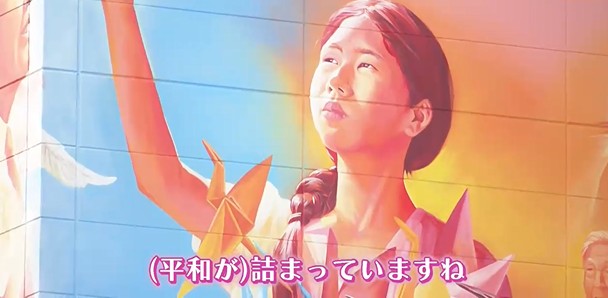 二人の目の前に現れたのは200平方メートルを超える巨大壁画。先月15日に完成披露式典が行われたばかりの最新アートなんです!核なき世界の実現に向けたメッセージを発信するため、メキシコ人の壁画家姉弟が3週間かけて描き上げました。