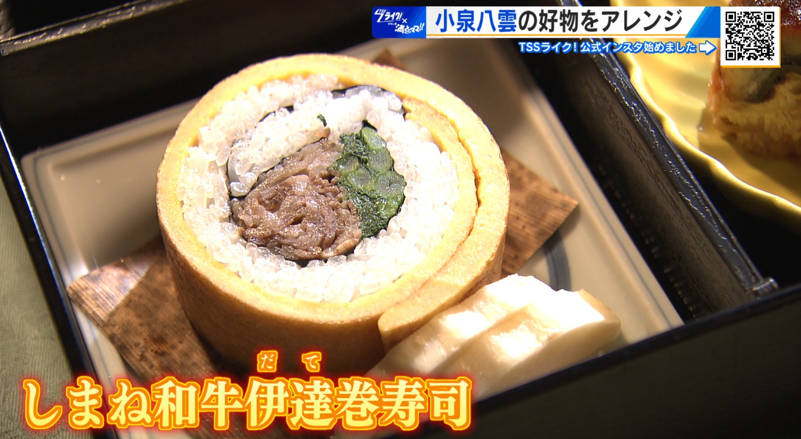 続いてのおすすめは、島根和牛を使った伊達巻き寿司です。