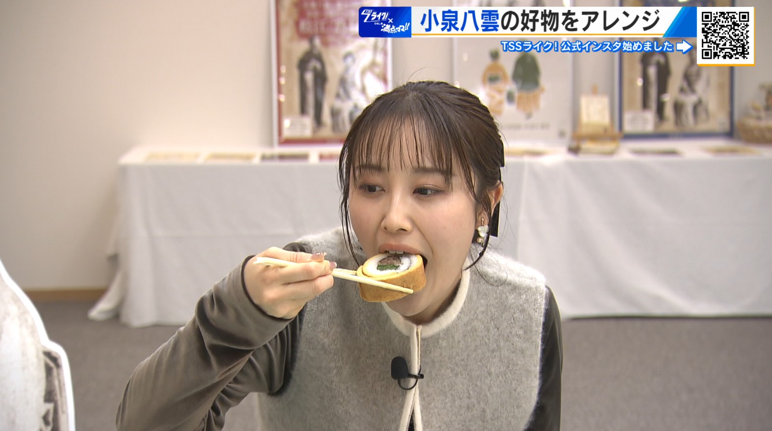 (※実食)味はパンだけど、すごい食感がとろける。美味しい。中まで和の香りと味が染みてて、鼻に抜ける香りが揚げパンの香りで。和と洋が混ざり合った感じですね。八雲さんの好きだったものを、今、私たちがこうやってアレンジしていただけるのもすごく気持ちも楽しいですね」