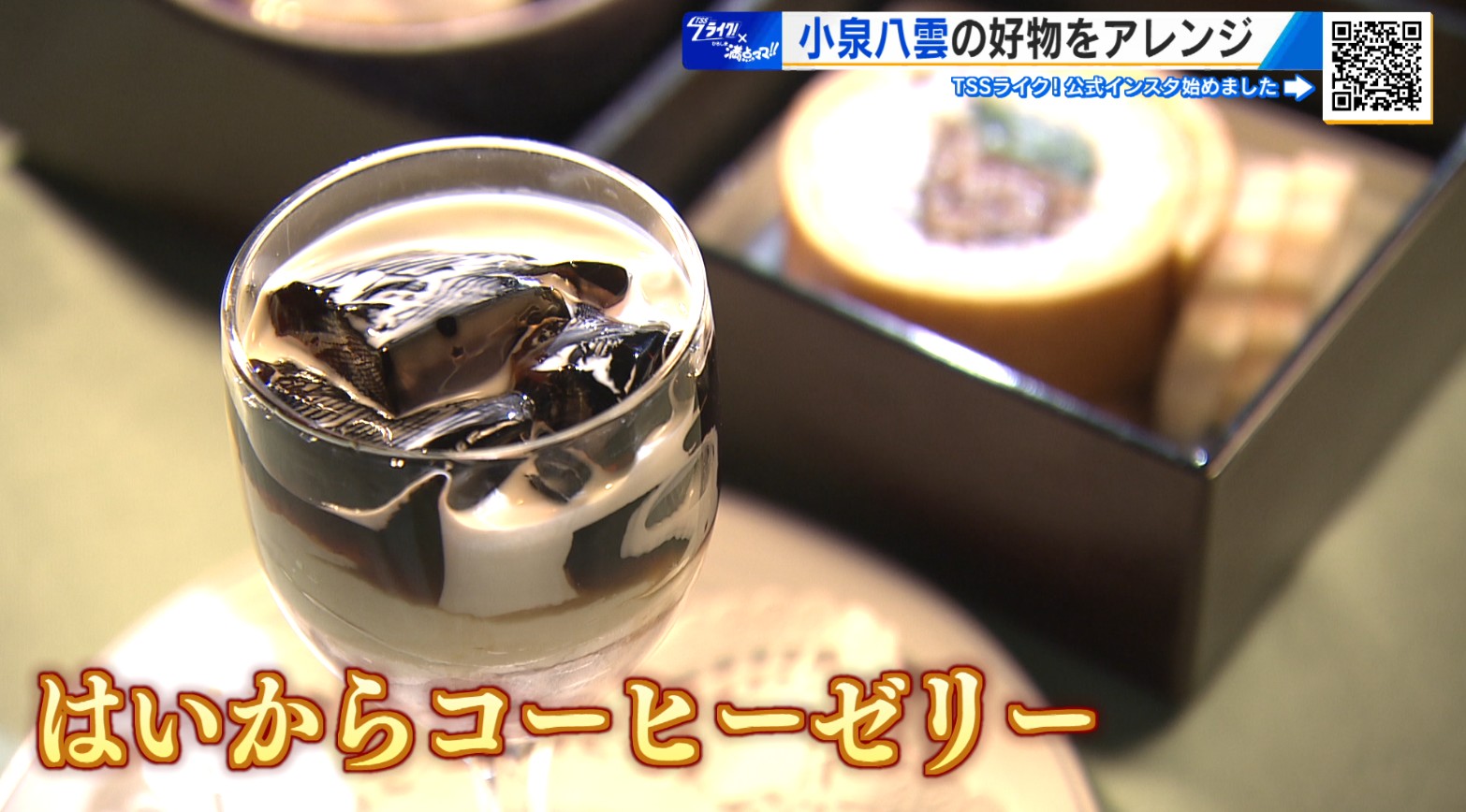 アンコのクリーム、カスタード、コーヒーゼリーの3層になっており、八雲の好物がたっぷり詰まっています。